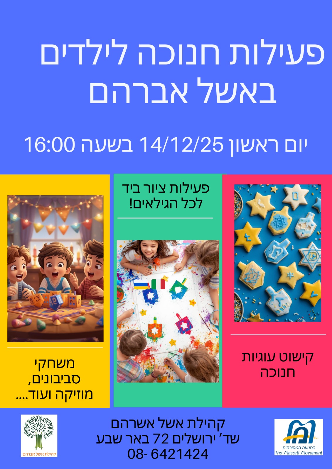 פעילות חנוכה לילדים שבה נקשט עוגיות של חנוכה, נצייר בידיים ונשחק ביחד!