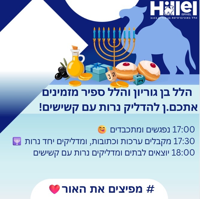 גם השנה הלל בן גוריון מזמינים אתכם להפיץ אור בחנוכה!